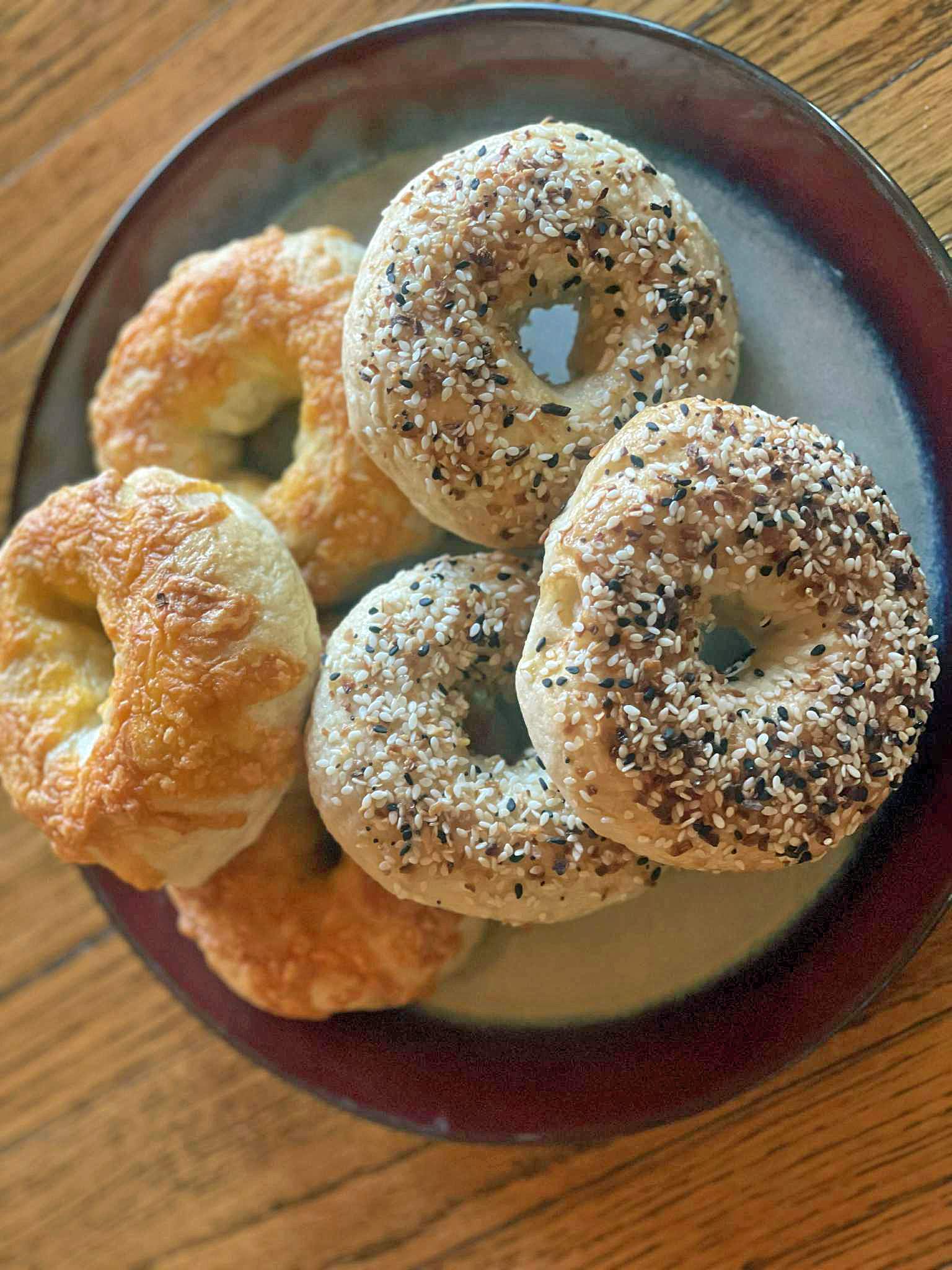 Chewy delicious bagels. Choose between plain, cheese, poppy seed or the everything bagel, or get a variety of each.
